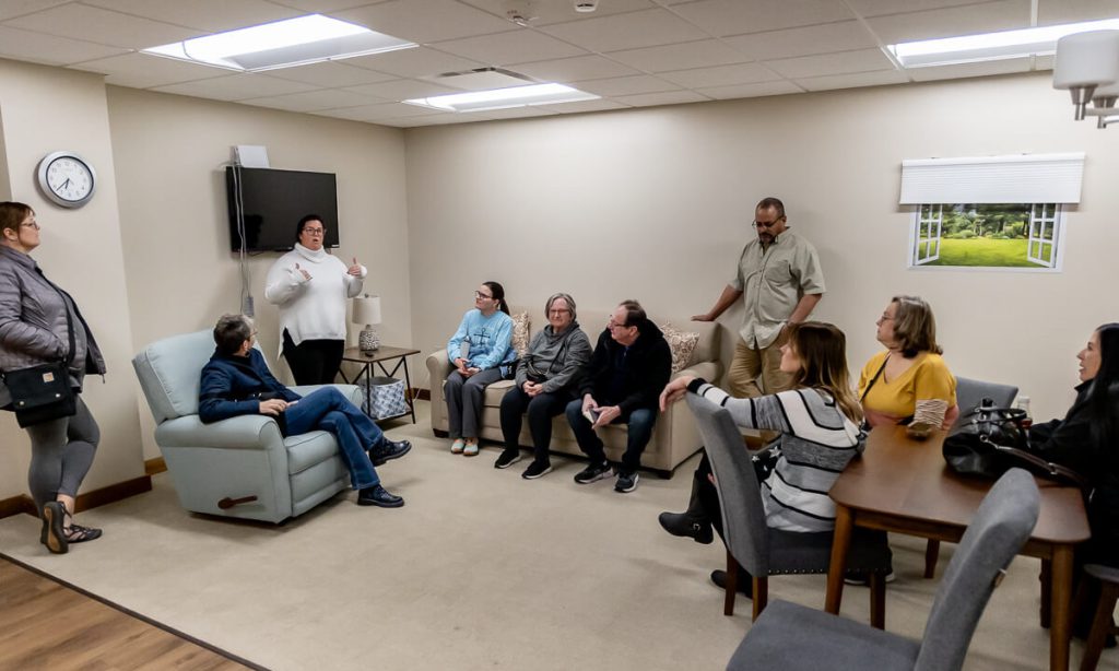 About two dozen parents and guardians from Blossom IDD’s Morning Glory parent-guardian group toured the apartment on Feb. 24 and observed various tech in action.