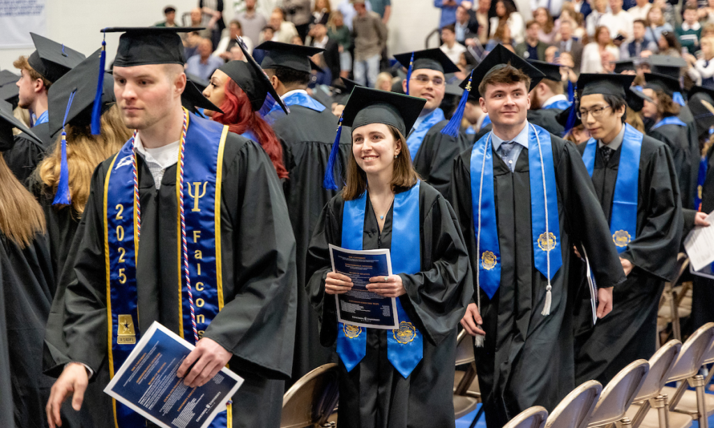 On Saturday, Kaylee McCarty, an undergraduate receiving a Bachelor of Arts in Psychology, encouraged her peers to imagine themselves as the children they once were, asking them to contemplate their childhood dreams of their “grown up” careers. She asked, “Are you pursuing that role now or have you gone on a completely different path? Feel free to open your eyes now and take in all that you have achieved to get to this moment. What do you want to be when you grow up?”