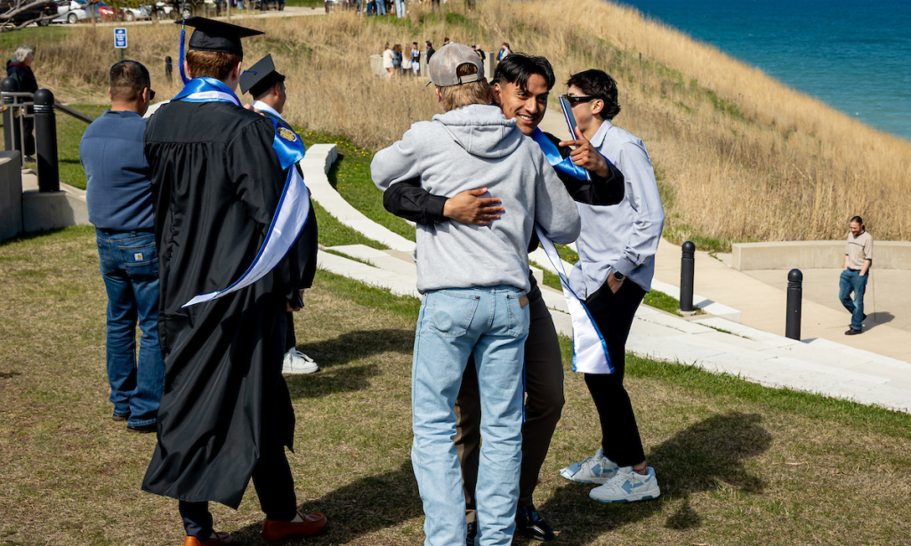 As the ceremonies concluded, graduates sought out their family and friends to embrace and take photographs with. A favorite photo spot was outside on the bluff by Lake Michigan. There was definitely something spiritual about the groups of new grads all standing near the water, engrossed by the love of those individuals who have helped guide them along God’s path.