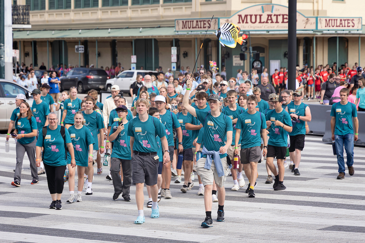 The energy was contagious from sun up to sun down. Students were enthusiastic to be out and about with other like-minded peers and leaders. They proudly expressed their individuality by wearing funky hats, brightly colored tutus, glow sticks as jewelry, and matching shirts with Christ-influenced slogans. They walked through crowds cheering positive affirmations, all while gathering around the one person holding a standard, so as not to lose their other group members in the midst of thousands.