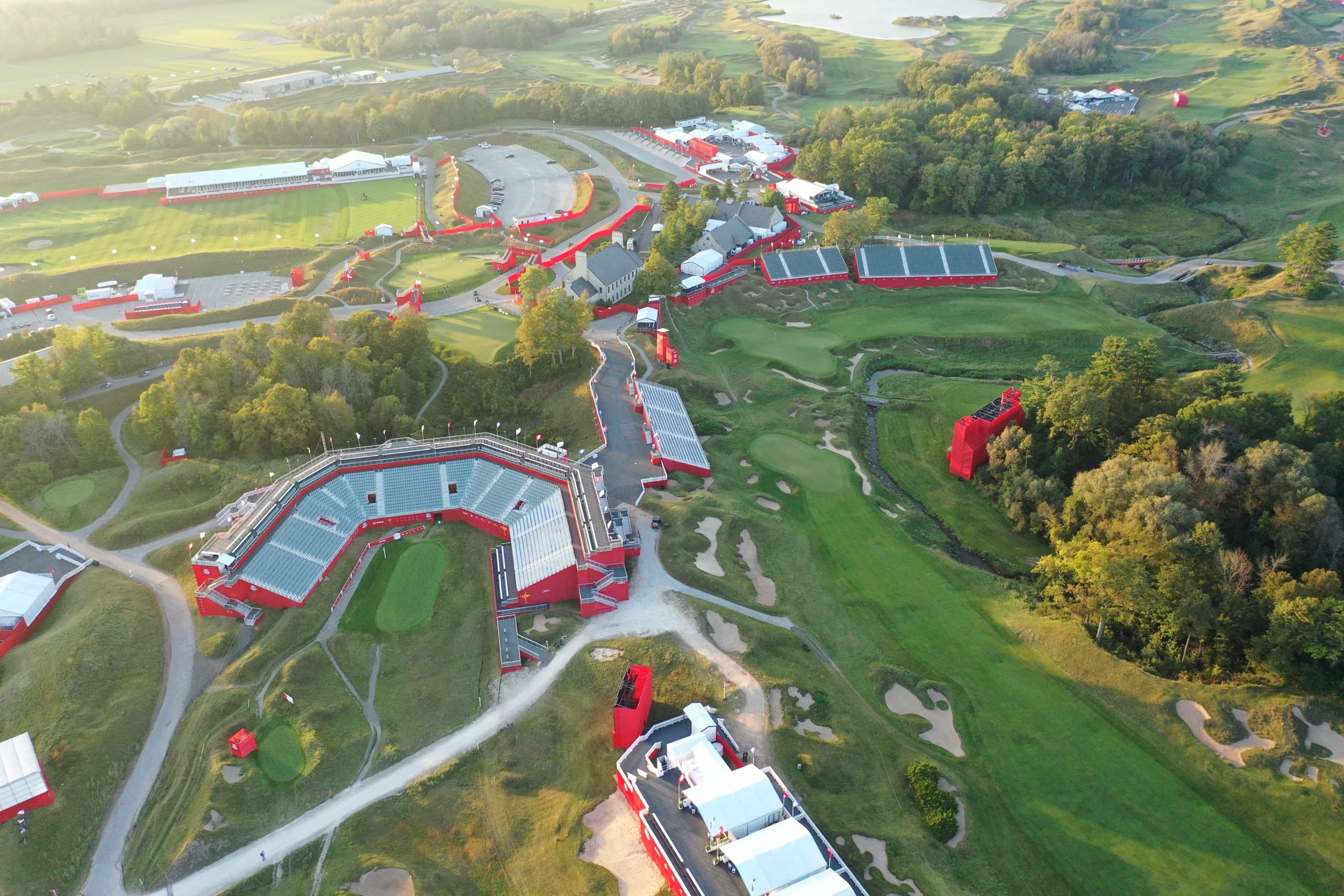 “Building a city on a golf course.” These aerial photos, courtesy of Stewart Design and the PGA of America, provide a glimpse of the magnitude of the on-course infrastructure built for the Ryder Cup.
