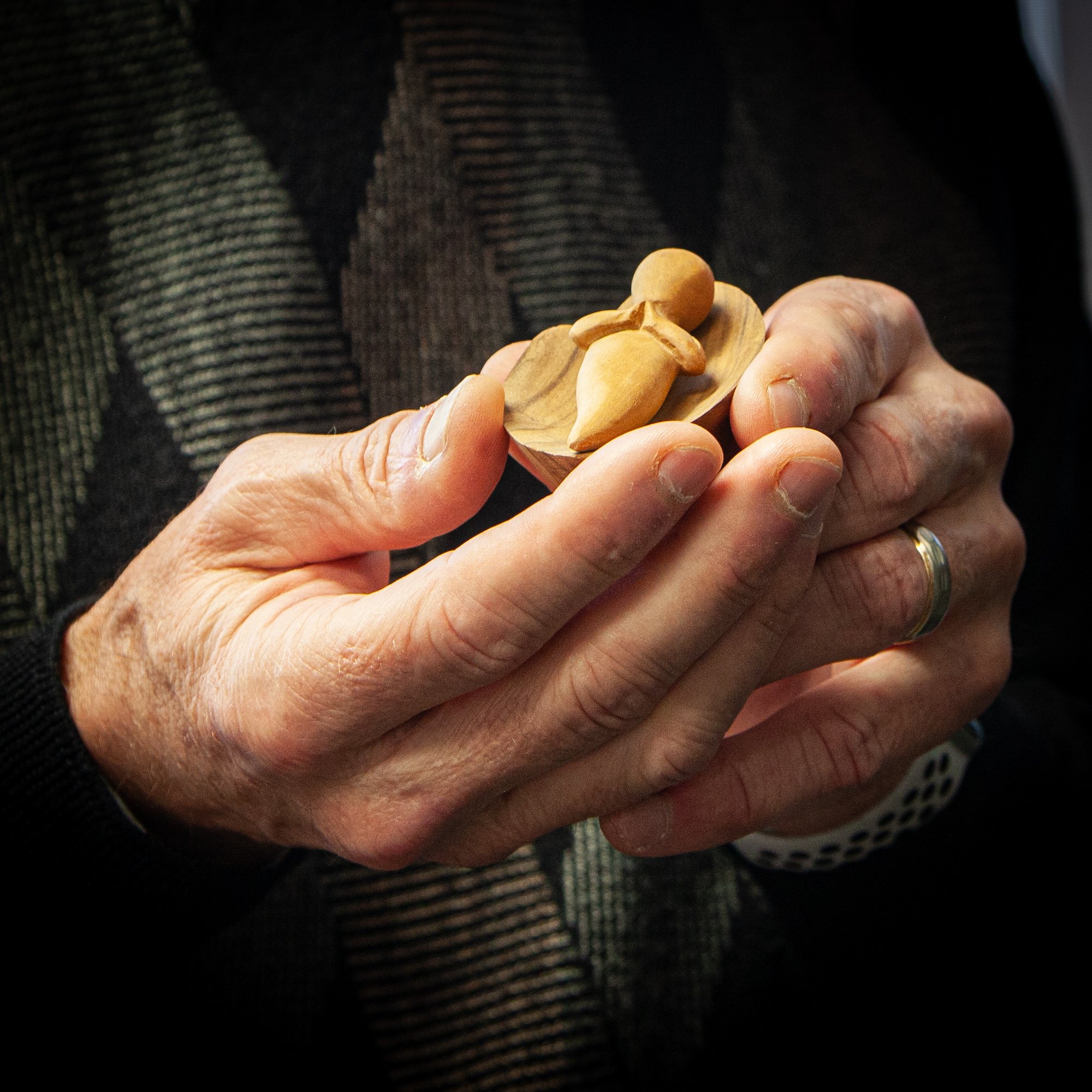 “After the funeral, the family did a number of things to thank the university,” Roy says. “One was to give us this Nativity set, made of olive wood from the Mount of Olives in Israel. One of the daughters loved visiting the Holy Land, and brought this set back with her and gave it to us.